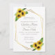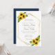 modern and romantic watercolor sunflowers with a navy blue back and a faux gold geometric frame.