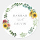 Seal your invitation envelopes or favours with these classic greenery wedding stickers. Featuring your names framed by a watercolor wreath of green eucalyptus foliage, sunflowers and roses. Coordinates with the Sunflowers and Roses collection found in the Adore Paper Co. Zazzle Shop.