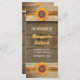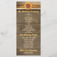 wedding ceremony and wedding party programs with sunflower blossoms and old rustic wood background.