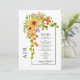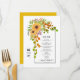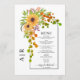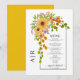 This elegant wedding menu card is designed to complement your special day with its captivating arch frame adorned with vibrant yellow sunflowers, berries, and autumn-coloured leaves on the upper left part . The initials of the couple are elegantly displayed in script typography, adding a personal touch to your wedding menu. The back of the card is a solid yellow colour, radiating joy and happiness.