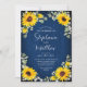 Sunflowers Babys Breath Lights Navy Wood Wedding Invitation