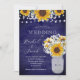 Sunflowers Babys Breath Navy Jar Lights Wedding Invitation