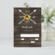 Sunflowers Barn wood country chic wedding RSVP Card with cross arrows and sunflower bouquet