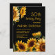 Beautiful rustic yellow sunflowers on black 50th birthday party invitation.. Contact me for assistance with your customisations or to request additional matching or coordinating Zazzle products for your celebration.