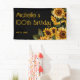 Rustic, elegant custom birthday party 100th birthday banner with yellow sunflowers on a black background. Personalised with the name of the guest of honour and her age. Contact me for assistance with your customisations or to request additional matching or coordinating Zazzle products for your celebration.