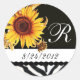 SUNFLOWERS BLACK WHITE ZEBRA FUR MONOGRAM CLASSIC ROUND STICKER