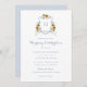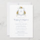 Sunflowers Blue Hydrangea Greenery White Monogram Crest Wedding Invitation. Watercolor Dusty Blue Wedding Crest. Elegant White Floral Hydrangea Greenery Wedding Invitation