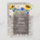 Yellow sunflowers, white roses and navy blue flowers rustic country fall bridal shower invitations
