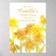 A cheerful yellow bridal shower welcome poster featuring sunflowers in full bloom in shades of sunshine and honey yellow watercolor. Lovely for the bride to be! Sunflowers are a favourite flower for weddings representing dedicated love, strength, and happiness. You can edit the text to fit your needs. Find matching stickers, gift tags, totes, and more in my shop.