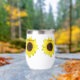 Beautiful bright photographic yellow sunflowers adorn this botanical floral thermal wine tumbler. Personalise with a Name and bring beautiful sunshine for any occasion.