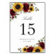 Sunflowers Burgundy Floral Rustic Table Number. Elegant Sunflowers Greenery Wedding Table Numbers
