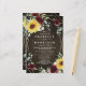 Design features a printed barn wood grain background with a geometric gold coloured frame that's decorated with burgundy red roses, blush floral elements, sunflowers, eucalyptus and other greenery.