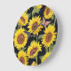 Sunflowers, butterflies, watercolor black backgrou large clock