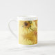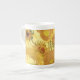A bone china mug with the oil painting, Sunflowers (1888) by Vincent Van Gogh (1853-1890). Fifteen sunflowers in a vase against a golden background. One of Van Gogh's many paintings of sunflowers.