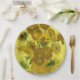 Sunflowers by Vincent Van Gogh, oil on canvas 1889, is a still life painting of fifteen brilliantly colourful sunflowers in a large vase against an acidic yellow background. A range of warm yellows and orange contrast with cool tones, punctuated by dark accents and bold, insistent outlines, for an effect of flattened forms that capture the inner life of the flowers in the vase. Van Gogh painted his iconic Sunflowers as a series of paintings for his Yellow House in Arles, France, where the painter Paul Gauguin also lived and worked for a brief time.