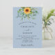 A dusty blue background decorated with sunflowers, eucalyptus greenery. Personalise and add your names and party details.