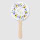 This round, sunflower paper fan is a beautiful way to share present your wedding program to your guests. Personalize the front with your initials and customize the wedding party information on the back. Add your thank you message to your guests for a finishing touch. This wedding hand fan is versatile for yellow and dusty blue wedding colors. This paper hand fan is a great addition to your outdoor summer wedding ideas.