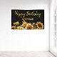 Elegant custom birthday party banner with yellow sunflowers on a black background. Personalised with the name of the guest of honour. Contact me for assistance with your customisations or to request additional matching or coordinating Zazzle products for your celebration.