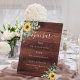 Rustic brown wood as background. Decorated with watercolored sunflowers and eucalyptus greenery. With the text: Open bar. Personalise and add your bar menu.