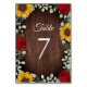 Sunflowers Eucalyptus Red Roses Wood Wedding Table Number