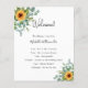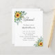 A modern, elegant, wedding program, timeline. A chic white background. Decorated with sunflowers, green watercolored eucalyptus greenery. Personalise and add your names and wedding details. Black coloured letters. If you have more text it's possible to reduce the line space, and remove the decor on the back.