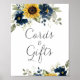 Sunflowers Floral Navy Blue Wedding Cards Gifts Sign. Floral Rustic Wedding Cards and Gifts Poster Sign