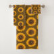 Sunflowers Floral Pattern Brown Yellow Towel Set