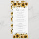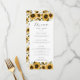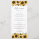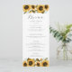 Rustic floral wedding dinner menu card featuring watercolor illustration of yellow sunflowers with baby's breath.