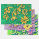 Wrapping paper set includes three variants of "Jerusalem Artichokes" painting, beautiful blooming sunflowers. Green, yellow and purple colours.