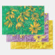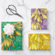Wrapping paper set includes three variants of "Jerusalem Artichokes" painting, beautiful blooming sunflowers. Green, yellow and violet colours.