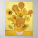 A poster featuring the painting, Vase of Fifteen Sunflowers (1888) by the Dutch artist Vincent Van Gogh (1853-1890). This post-impressionist artwork depicts a vase of yellow flowers set against a golden background. Van Gogh created numerous versions of sunflower paintings.