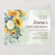 Elegant, country-style yellow sunflowers and greenery 1st birthday party invitation for a little girl. You can customise the text on this card for a birthday party for any age you are celebrating.