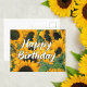 Nothing is more cheerful and sunny than this cute sunflower birthday card. The beautiful cursive font reads Happy Birthday over a field of pretty sunflowers.