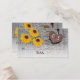 Sunflowers, metallic rusted heart with monogram on wood rustic wedding place card featuring a brown rusted metallic heart with initials nailed on weathered grey barn wood board and three yellow sunflowers. This monogrammed floral wedding template design is fully customisable and is part of a wedding set or collection perfect for a summer or fall country barn wedding.