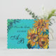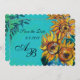 SUNFLOWERS IN BLUE TURQUOISE SUMMER PARTY MONOGRAM INVITATION