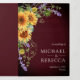 Sunflowers Lavender Burgundy QR Code Wedding Tri-Fold Invitation