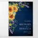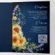 Sunflowers Lavender Navy Blue QR Code Wedding Tri-Fold Invitation