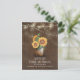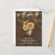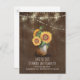 rustic country save the date postcard with sunflowers mason jar, string lights and wood background texture