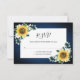 Sunflowers Navy Blue Floral Geometric Wedding RSVP Card