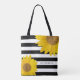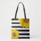 Sunflowers on Black and White Stripes Personalised Tote Bag