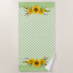This country / farmhouse design has beautiful watercolor sunflower bouquets on a pastel green chequerboard background.