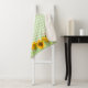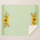 This country / farmhouse design has beautiful and bright yellow watercolor sunflower bouquets on a pastel green and white chequerboard background.