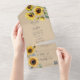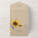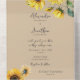 Your wedding day is a celebration of love, joy, and the beauty of nature's golden treasures. This All-in-One wedding invitation showcases the radiant charm of sunflowers on a pale tan background, creating an invitation that embodies warmth, happiness, and elegance. The All-in-One wedding invitations are both beautiful and practical by combining the wedding invitation with an easy to remove perforated RSVP postcard. They are also quick and easy to prepare for mailing. Simply address the invitation, fold the back flap and seal with the included clear stickers. Once your guests receive the pre-addressed invitation they simply tear off the perforated RSVP card and drop it in the mail. The addition of the QR code allows your guests to easily access your wedding website for information including reception details and dinner choices!