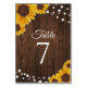 Sunflowers on Wood & String Lights Rustic Wedding Table Number