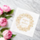 This beautiful floral Wreath surrounding the spouse names and wedding date, is composed of beautiful sunflowers, tender Peonies and « forget-me-not » myosotis. All printed with beautiful gold on these stunning napkins, perfect chic for your big day!