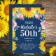 Sunflowers Pink Roses Navy Blue 50th Birthday Invitation