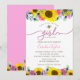 Sunflowers Pink Roses Sweet Bee Girl Baby Shower Invitation