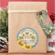 Sunflowers with blue gingham check background and a rooster weather vane rustic country picnic save the date label design.