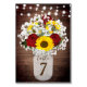 Sunflowers Roses Mason Jar String Lights Wedding Table Number