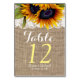 Rustic autumn elegant wedding table number (two faces) with editable text featuring big sunflowers and a white lace border on a beige faux burlap background. Ideal for your summer night or autumn fall | garden | elegant rustic country | outdoor backyard themed wedding.